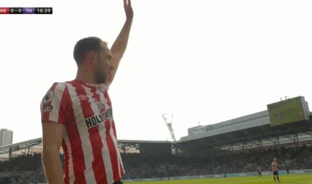 90+1'布伦特福德任意球开出,伊万·托尼在门前的抢点再次击中门框!